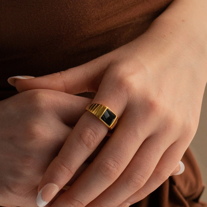 Black Enamel Signet Ring – Bold • Sleek • Unisex