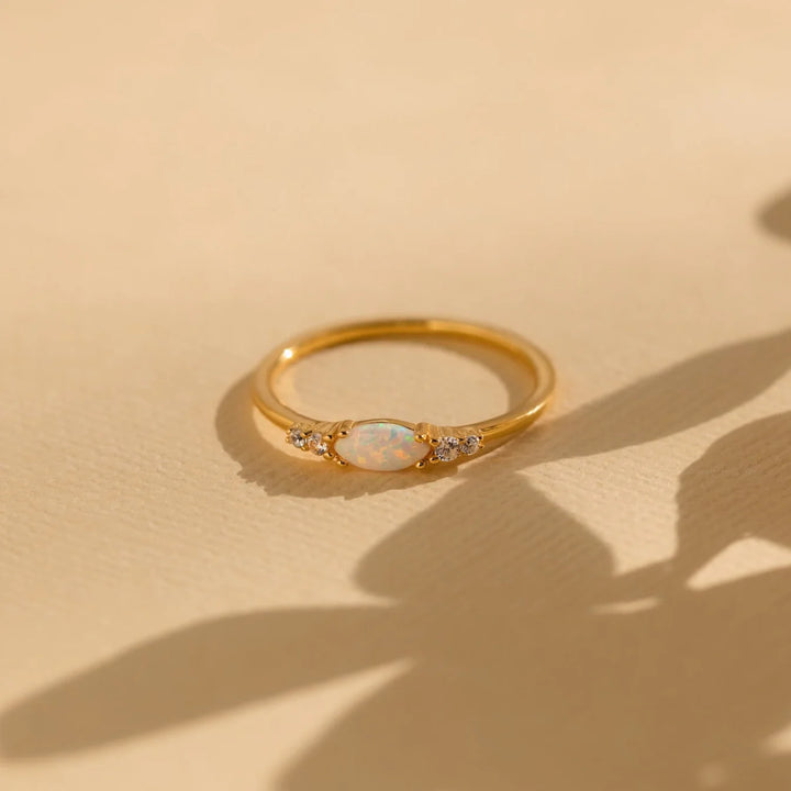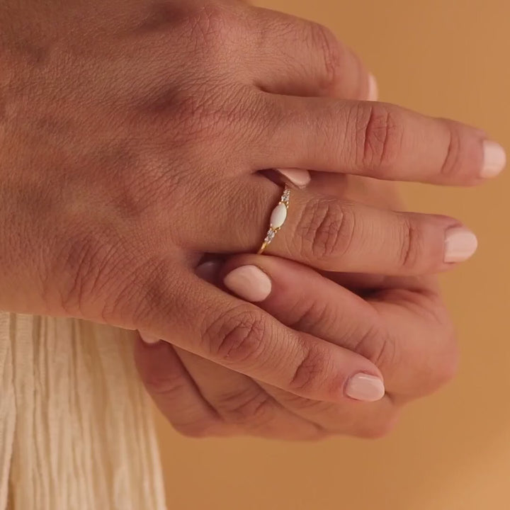 🌙 Marquise Opal and Diamond Ring – Elegant Radiance for Every Day
